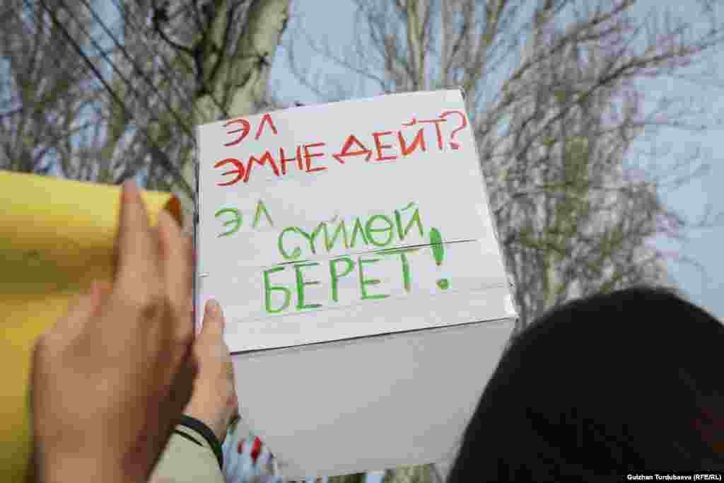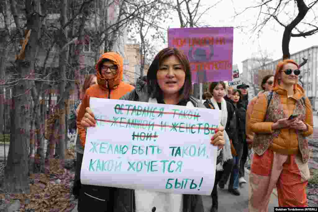 Алар аялдарга карата зомбулукту токтотуу, алардын эркиндигин камсыздоо, сөз эркиндигин коргоо сыяктуу талаптарды айтып чыгышты. Милиция кызматкерлери акциянын коопсуздугун камсыз кылып, жүрүштүн катышуучуларын коштоп жүрүшөт.