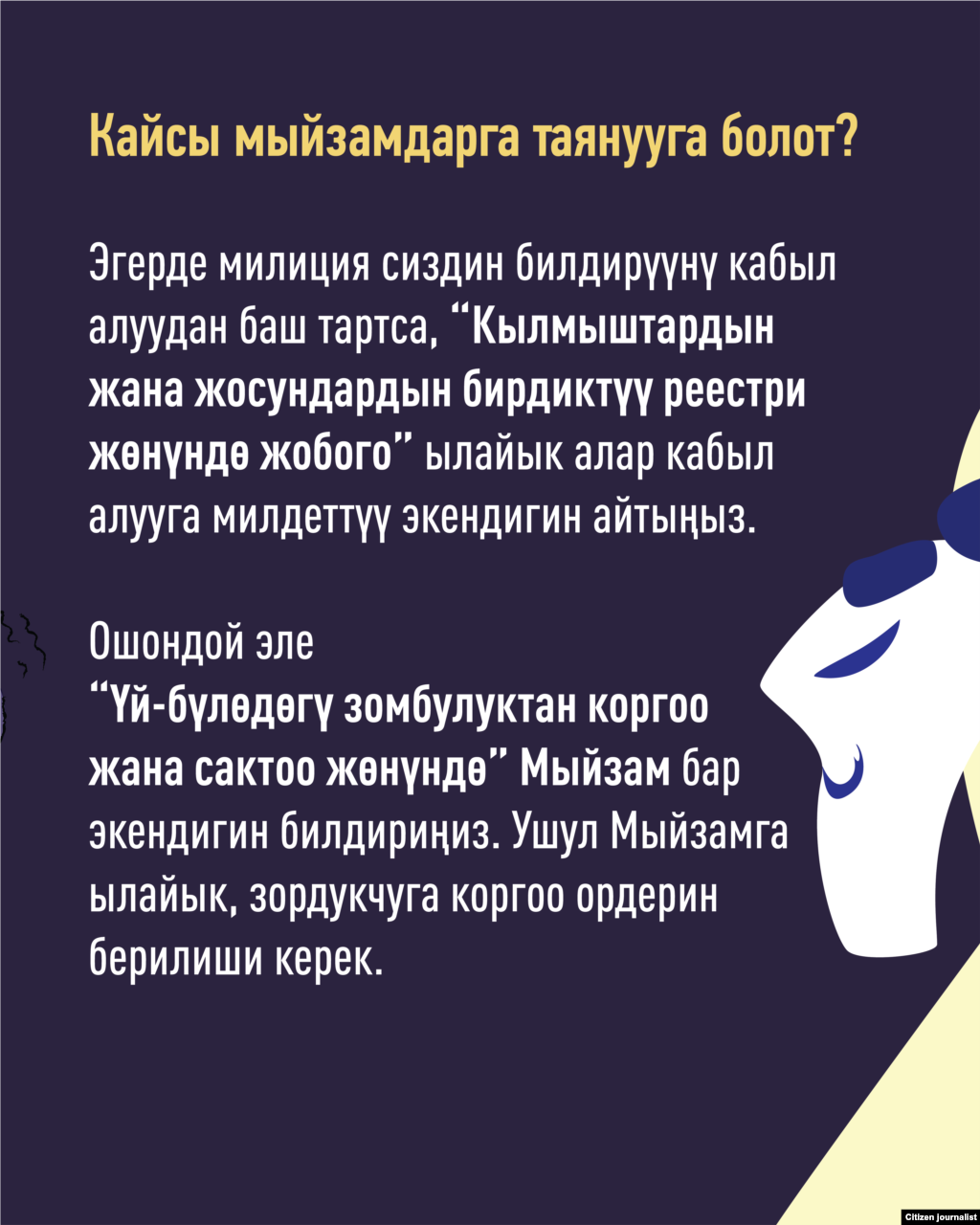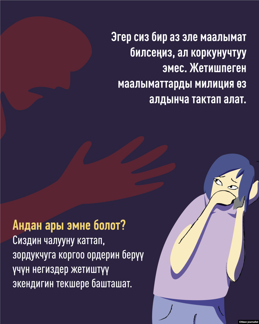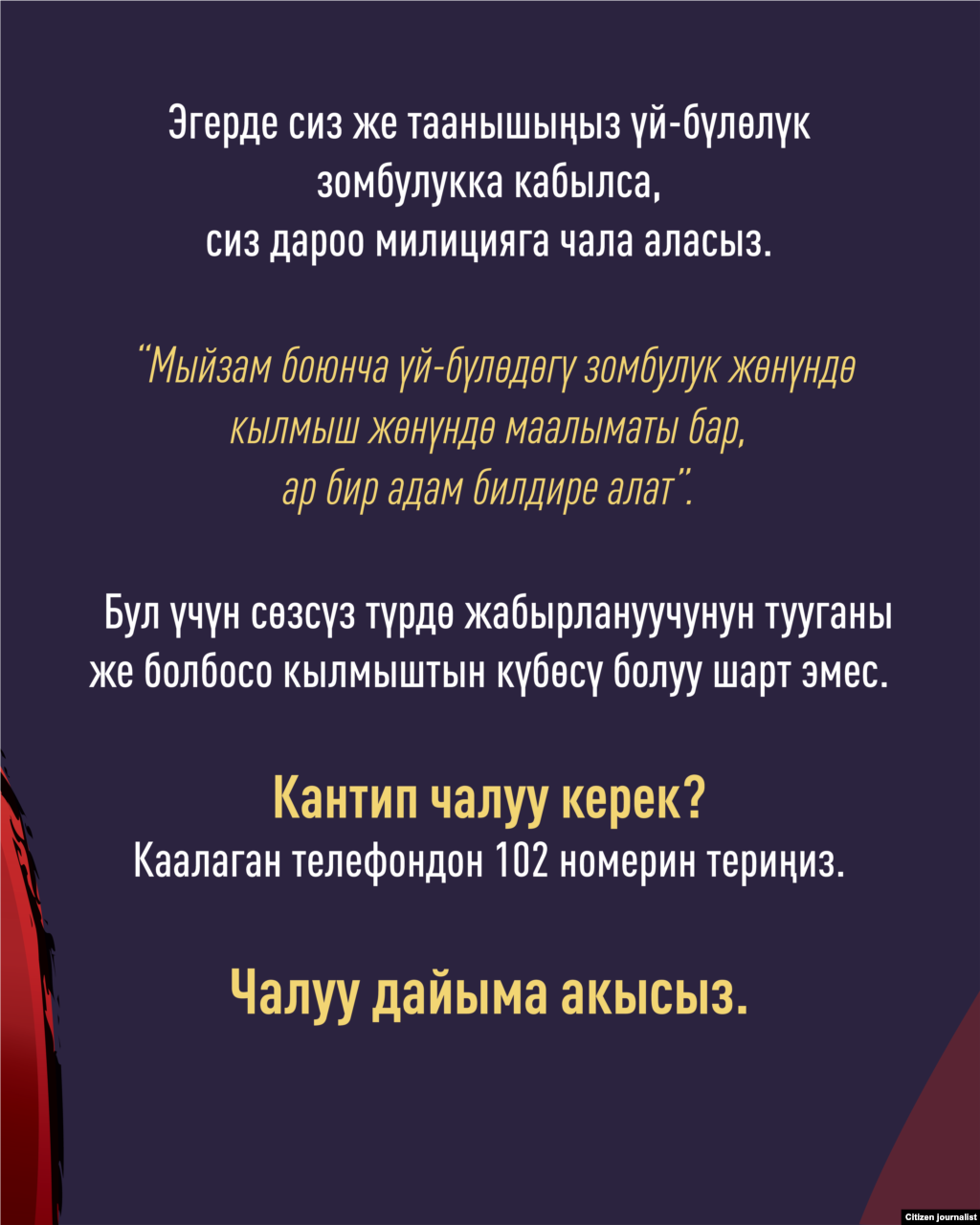 Сүрөттөрдү «Айкын багыт» коомдук фонду «Коопсуз үй» маалымат өнөктүгүнүн алкагында USAIDдин «Жигердүү жарандар» долбоорунун колдоосу аркылуу иштеп чыккан.